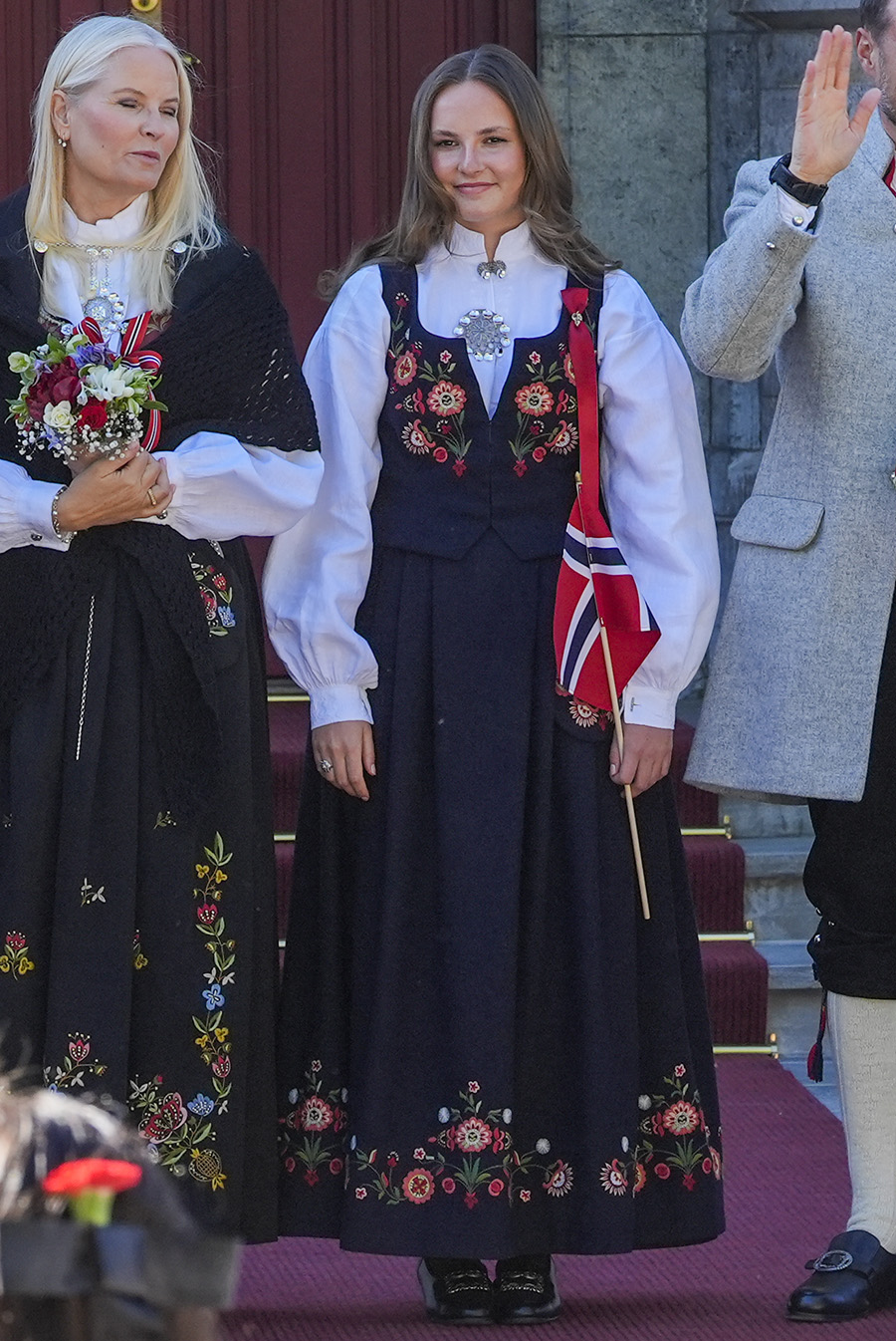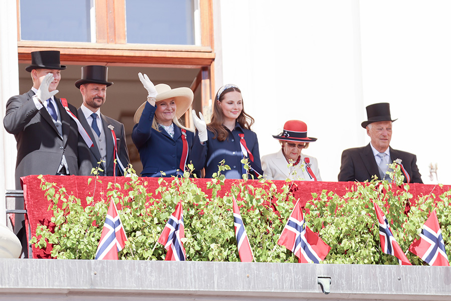 Bara några timmar senare sågs kronprins Haakon, 51, kronprinsessan Mette-Marit, 51, prinsessan Alexandra, 21, och prins Sverre Magnus, 19, på balkongen till slottet i Oslo tillsammans med kung Harald, 88, och drottning Sonja, 87.