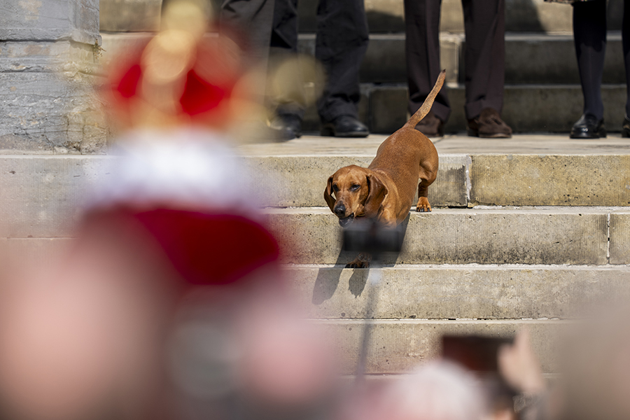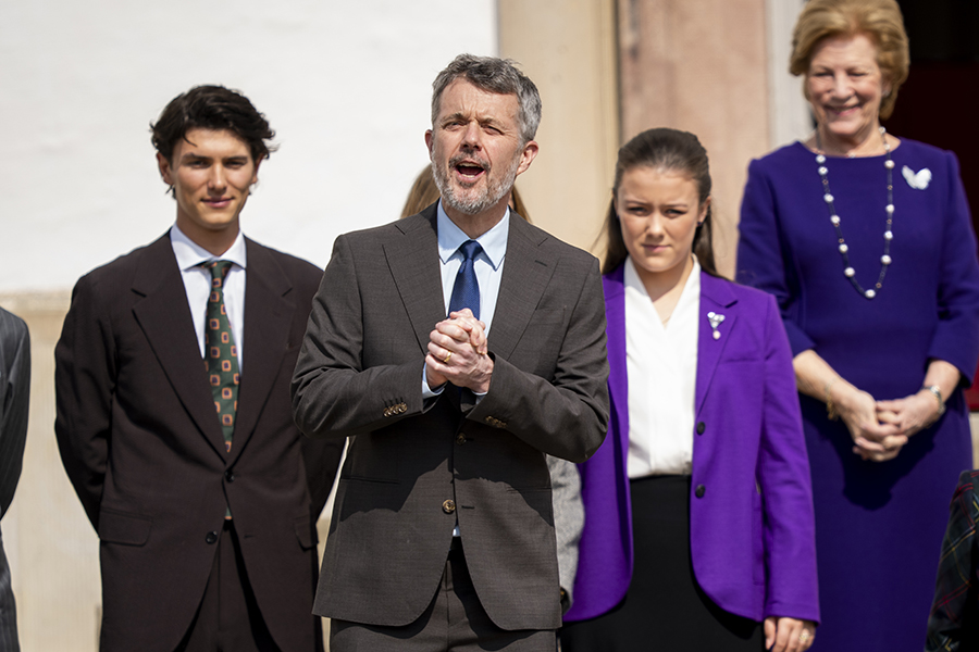 Kungligheten visade upp sig med familjen på trappan till Fredensborgs slott, där även kung Frederik höll ett tal.