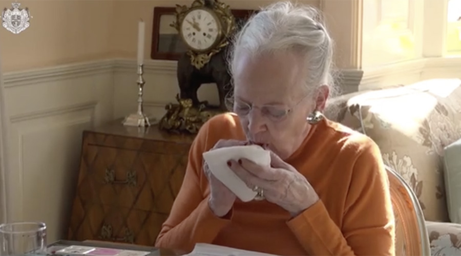 Margrethe är för sig själv medan barn och barnbarn håller sig isolerad i varsin våning på Amalienborg inne i Köpenhamn.