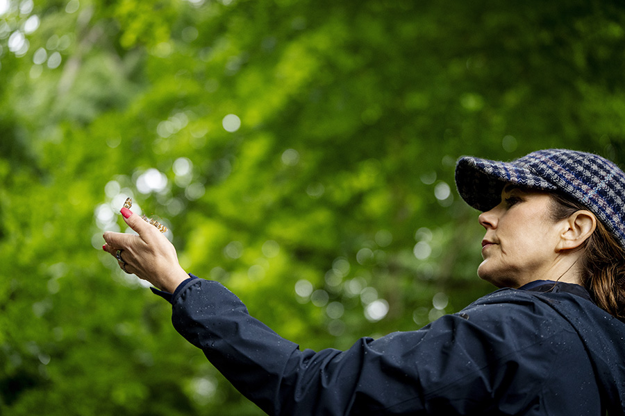 Redan vid ankomsten möttes drottningen av engagerade naturvårdare, redo att visa henne det arbete som pågår för att rädda Knudshoved Oddes unika ekosystem.