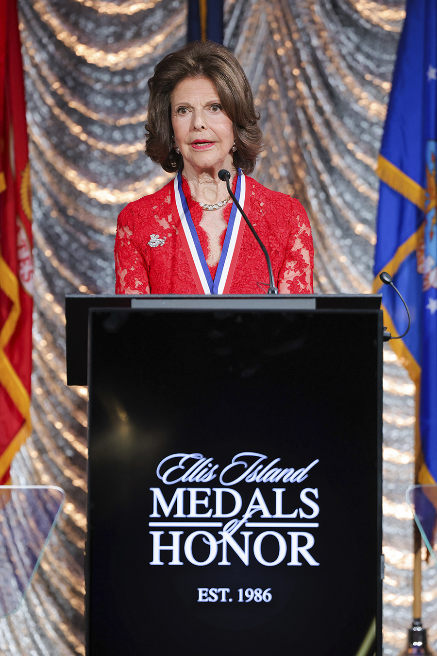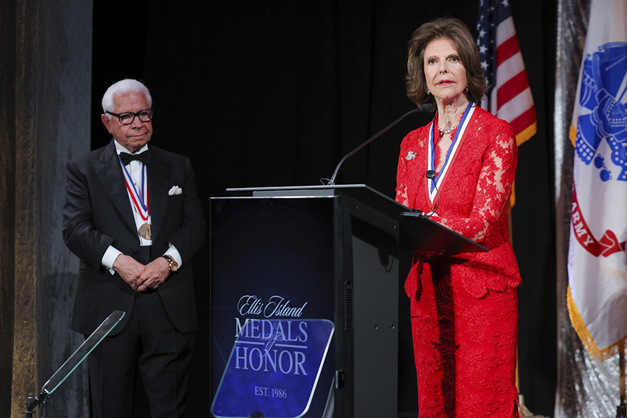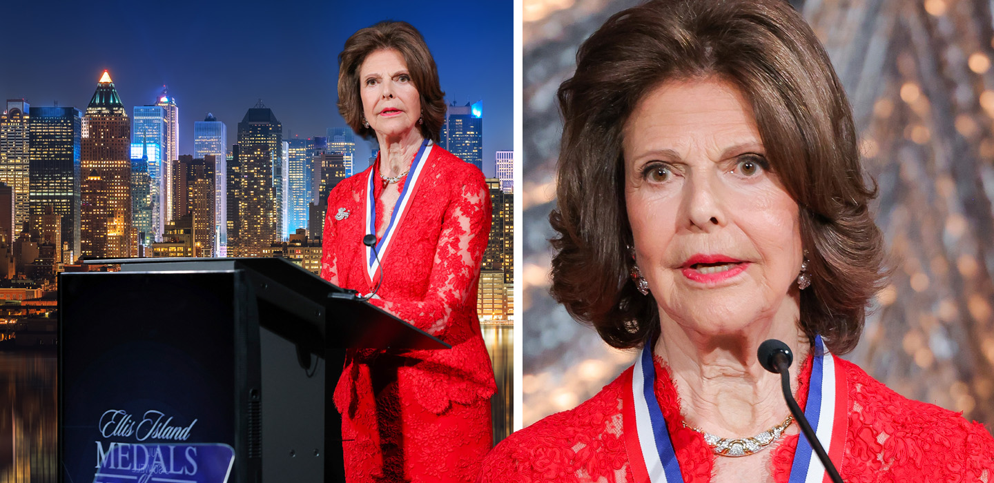 Silvia fick ett prestigefyllt erkännande under sin resa till New York när hon under en glamorös gala mottog den exklusiva ”Global Humanitarian Ellis Island Medal of Honor”.