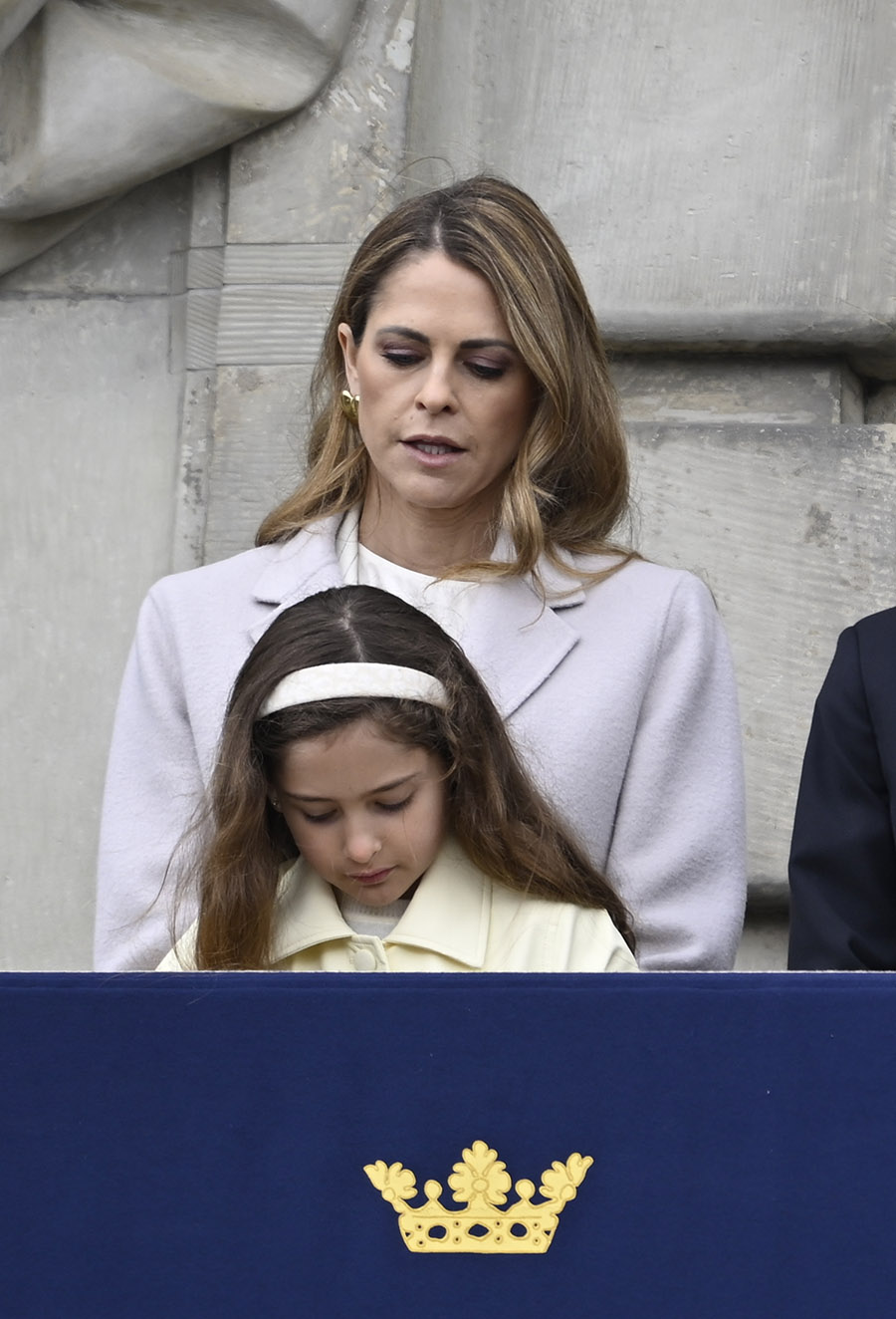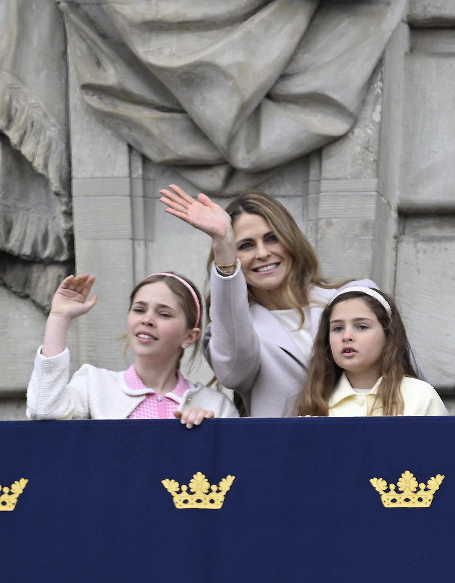 Madeleine var på plats med hela familjen för att fira sin pappa och landets regent, som hyllades på slottet med både musik av armén och blommor från folket.