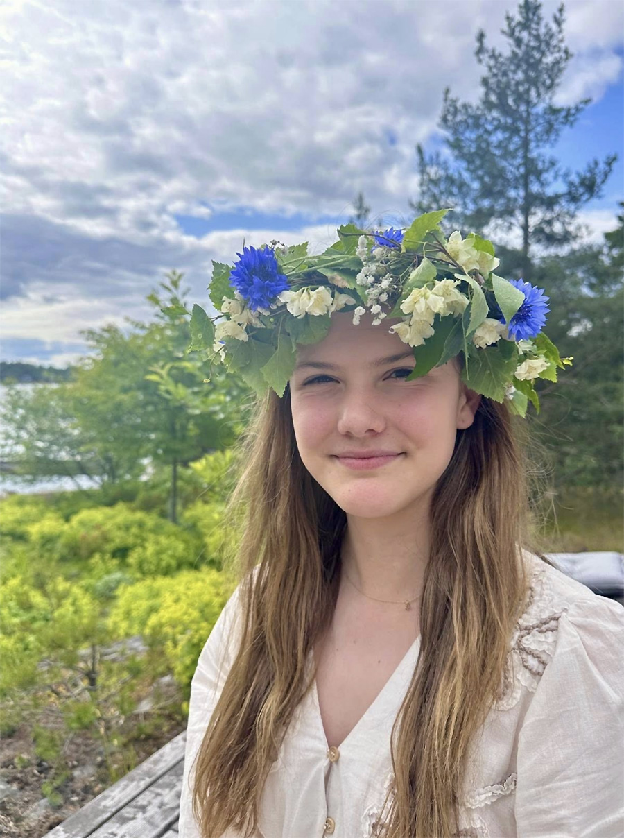 Och just idag, på midsommarafton, firar familjen tillsammans – med blomsterkransar, jordgubbstårta och dans kring stången.