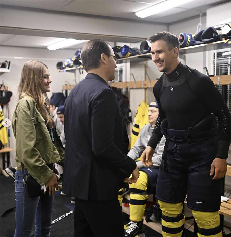 När den spännande matchen mellan Sverige och Slovakien var över tog sig både Daniel och Estelle ned till omklädningsrummet. Där fick de svenska spelarna möjlighet att träffa de kungliga supportrarna personligen och ta emot deras gratulationer och uppmuntran.