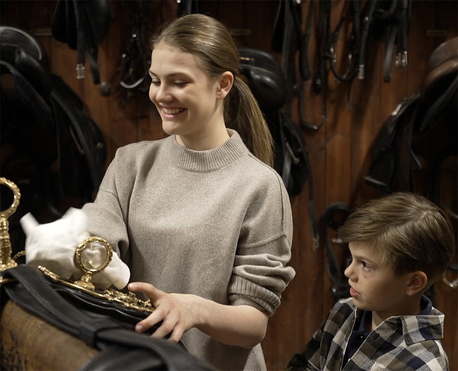 I ett charmigt inslag filmat på Hovstallet visade hon och lillebror prins Oscar, 9, prov på både nyfikenhet och humor. Men mest av allt: syskonkärlek.