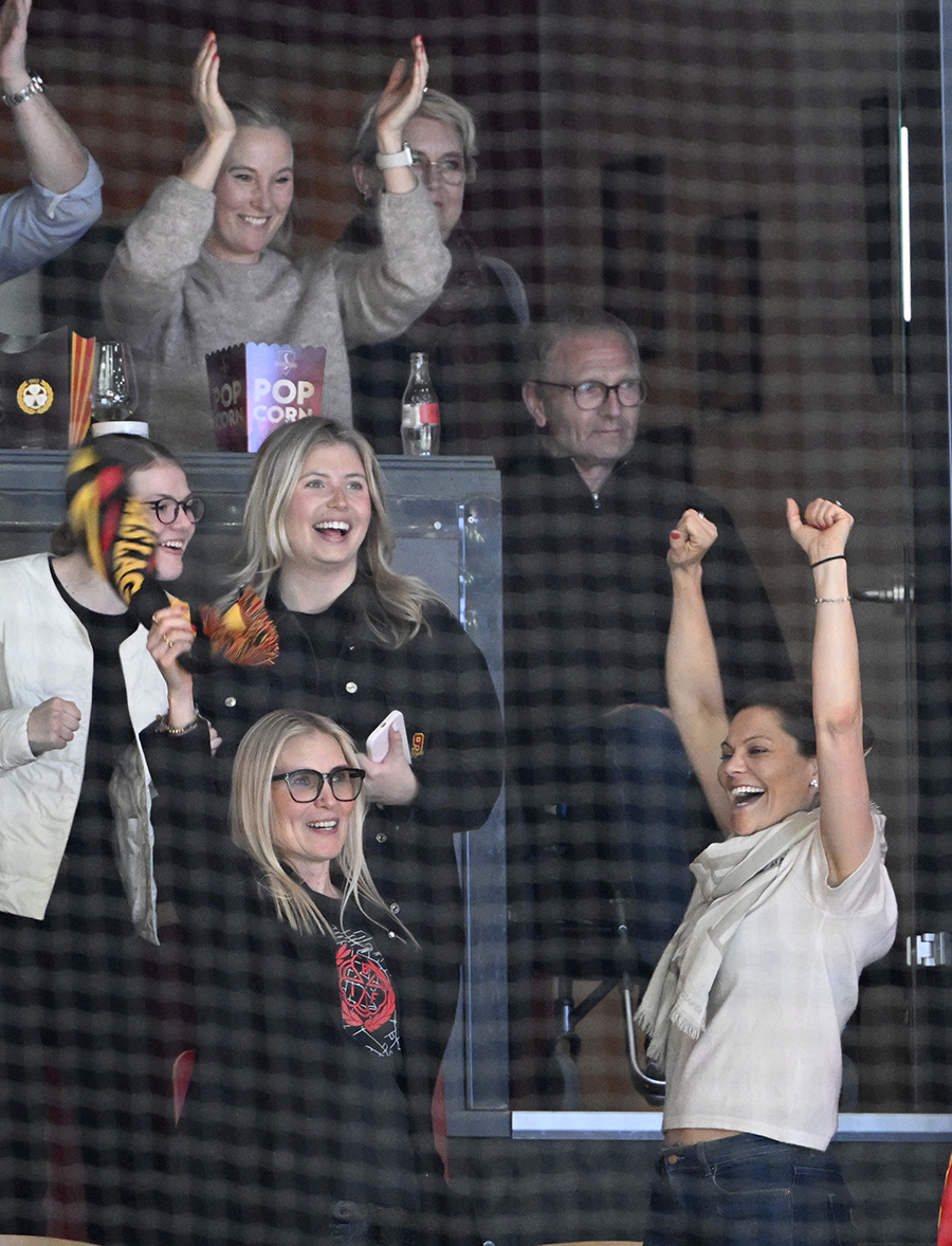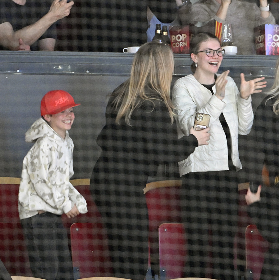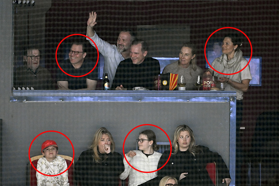 På läktaren fick kungligheterna sällskap av Daniels syster Anna Westling med man Mikael Söderström samt deras döttrar Vera och Hedvig Blom Söderström.