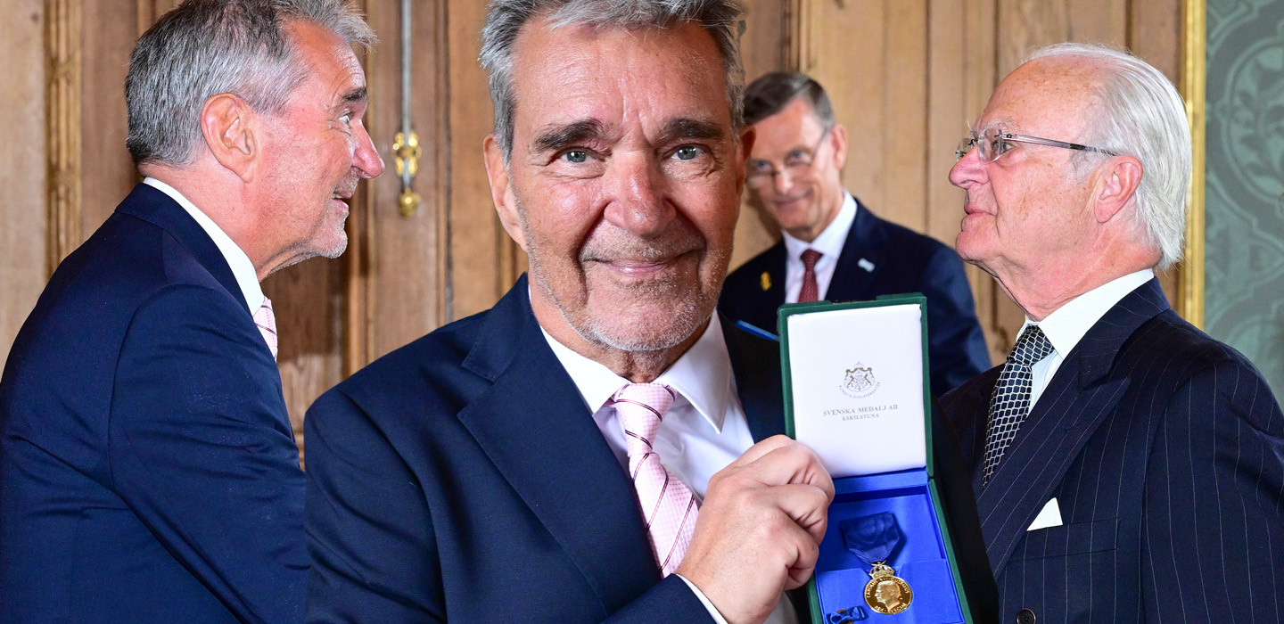 Under måndagens ceremoni på Stockholms slott tilldelades den folkkäre skådespelaren medaljen Litteris et Artibus, personligen överräckt av kung Carl Gustaf, 79.