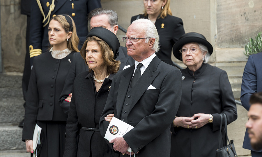Kungaparet reste tillsammans med prinsessan Madeleine och prinsessan Christina, 81, till Tyskland för att hedra den bortgångne släktingen.