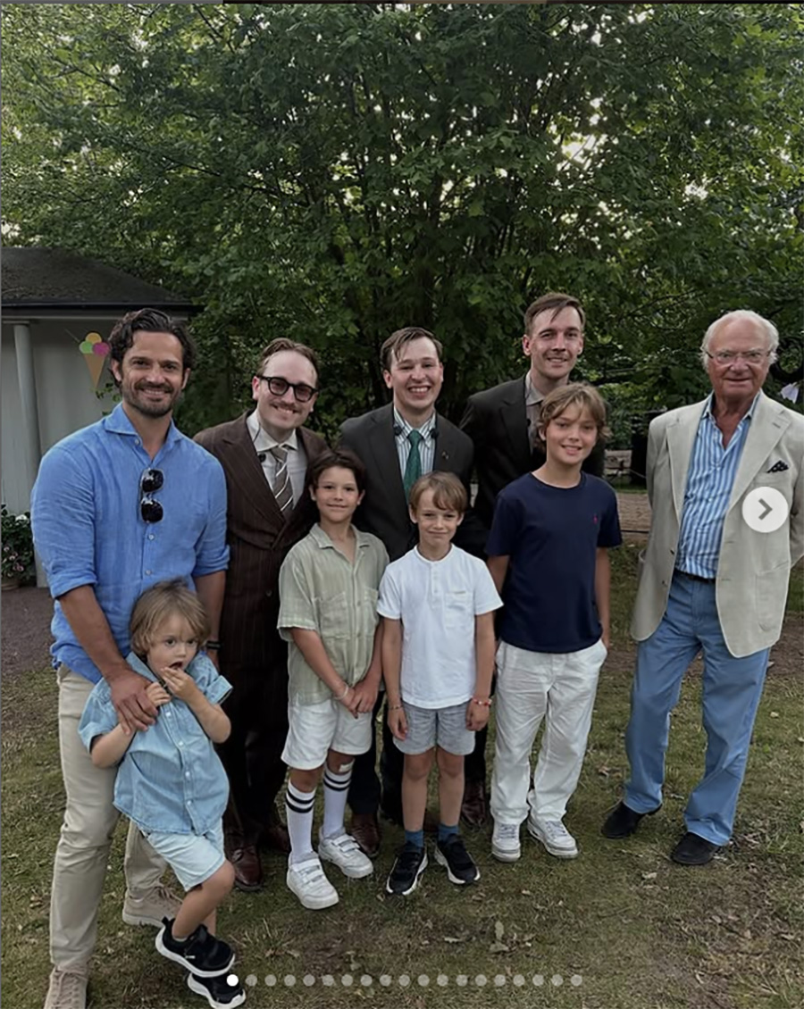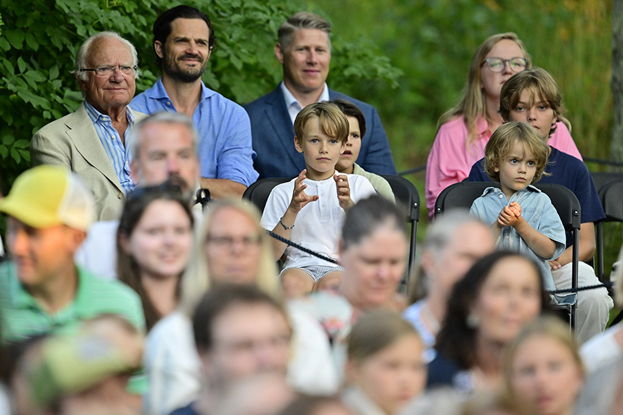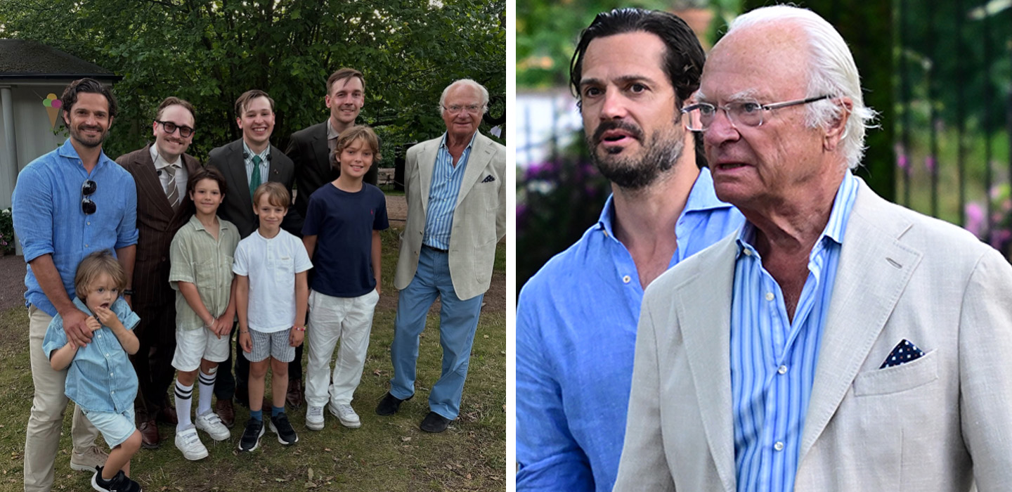 Kung Carl Gustaf, 79, och prins Carl Philip, 46, samlade hela den unga prinsligan – prins Alexander, 9, prins Gabriel, 7, lille charmören prins Julian, 4, och deras kusin prins Nicolas, 9, – för ett familjeäventyr fyllt av skratt, sång och dans.