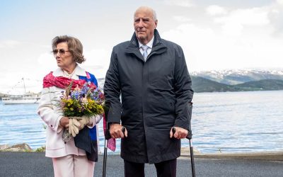 Kung Harald haltar på kryckor – stöttas så fint av drottning Sonja