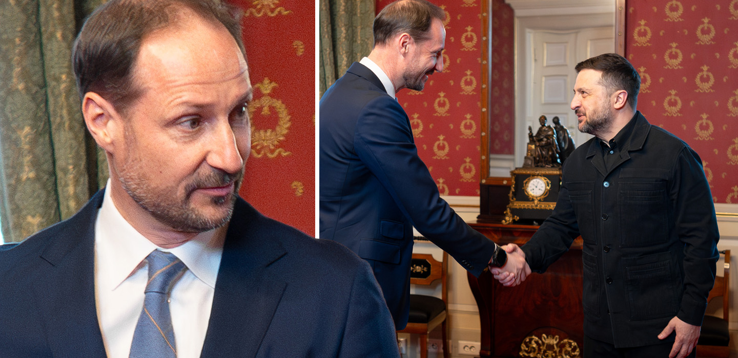 Under onsdagen den 15 april 2026 tog kronprins Haakon emot president Zelenskyj på Kungliga slottet, där presidenten också skrev i gästboken före samtalet.