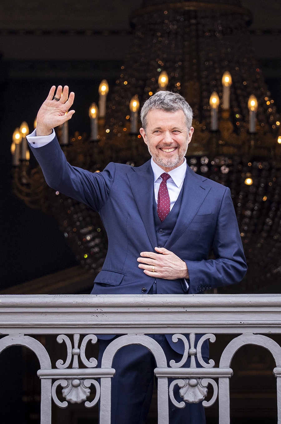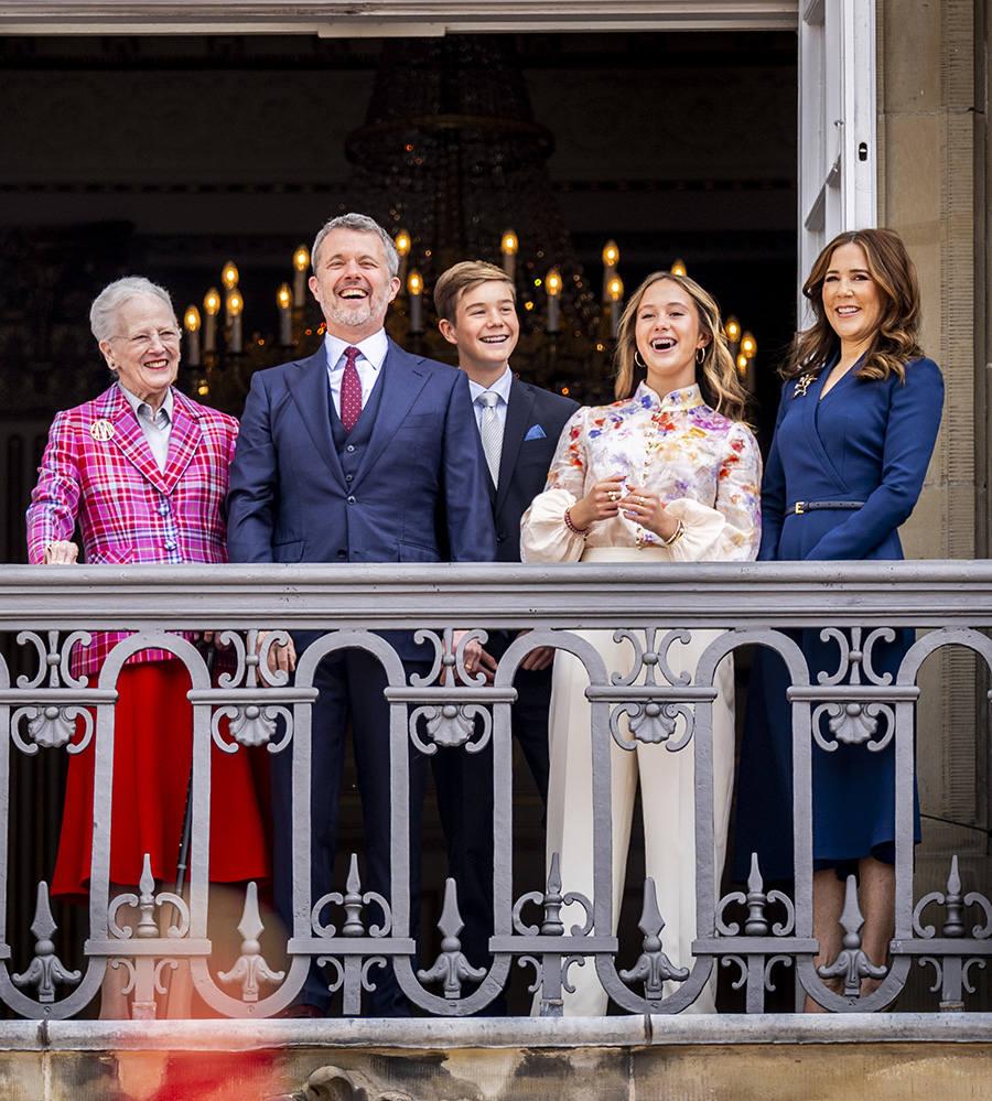 Kung Frederiks familj, inklusive hans mor, var med och hyllade monarken under den härliga stunden på slottsbalkongen.