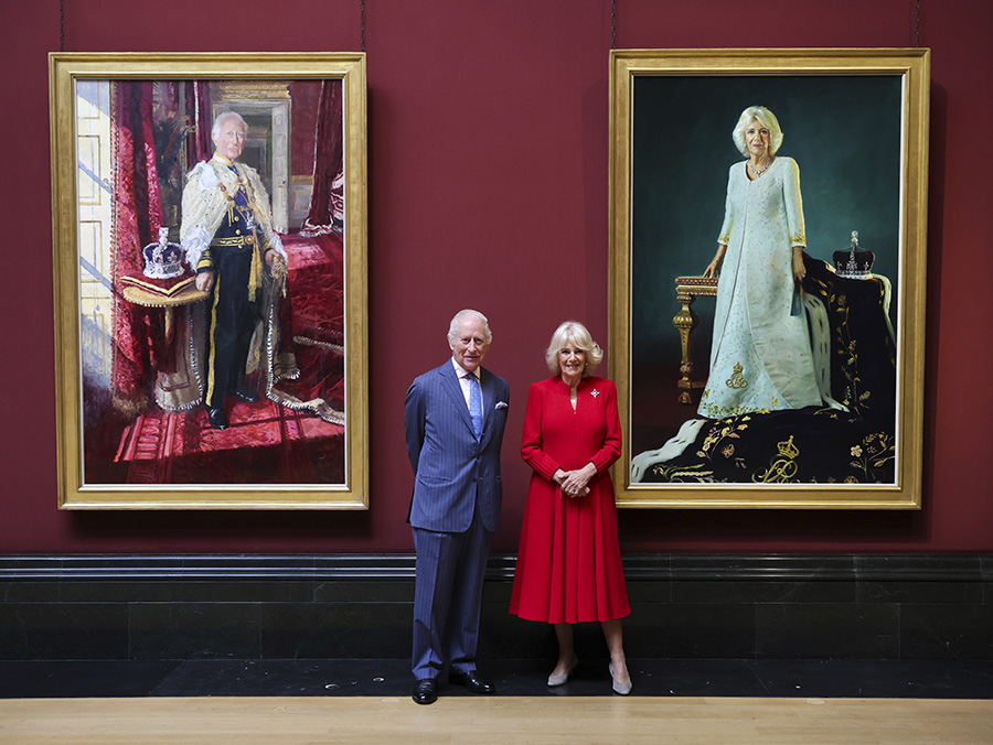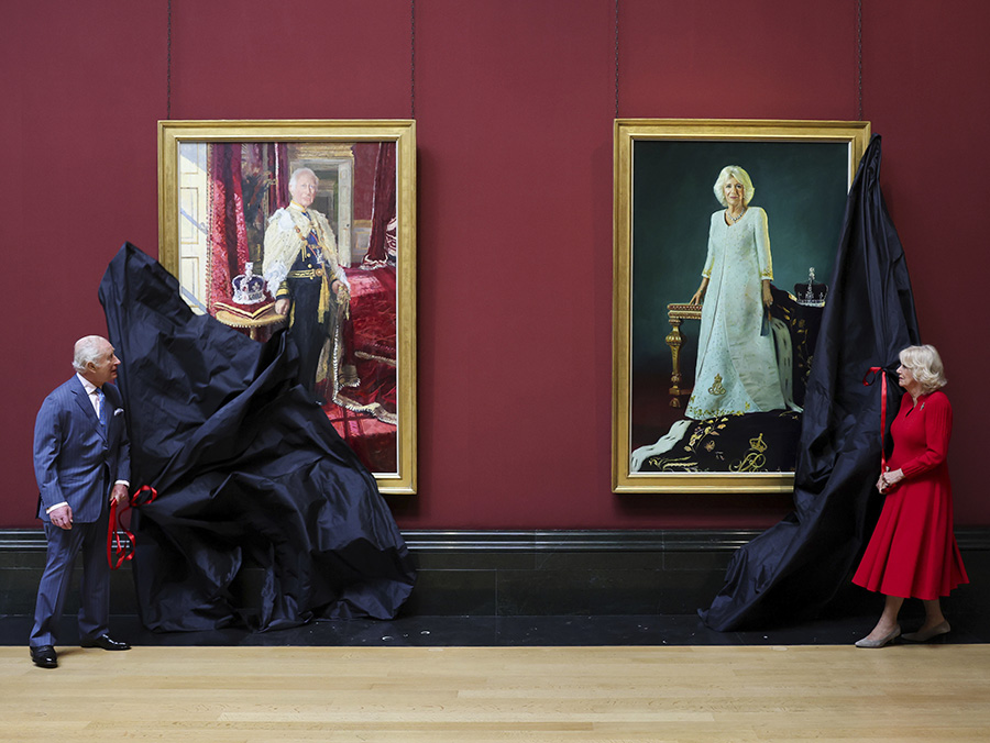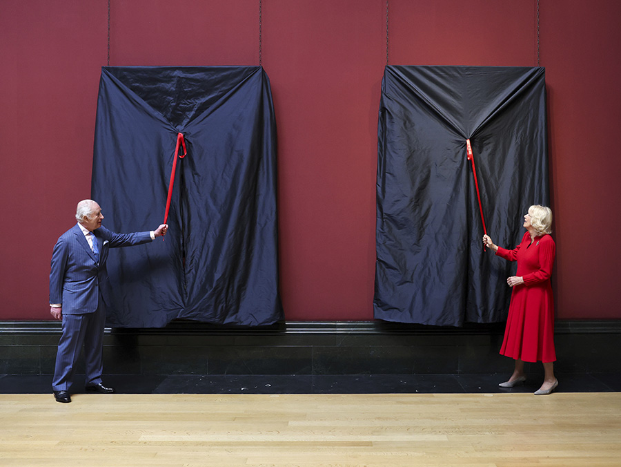Inför avtäckningen av de officiella porträtten visades även för första gången konstverk beställda av kungen för att fånga viktiga ögonblick från kröningshelgen.