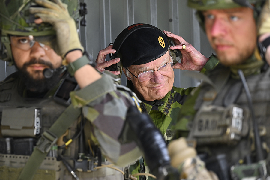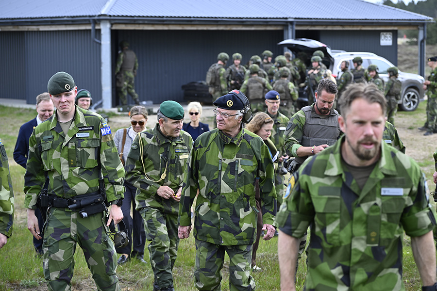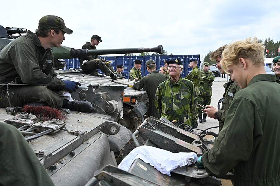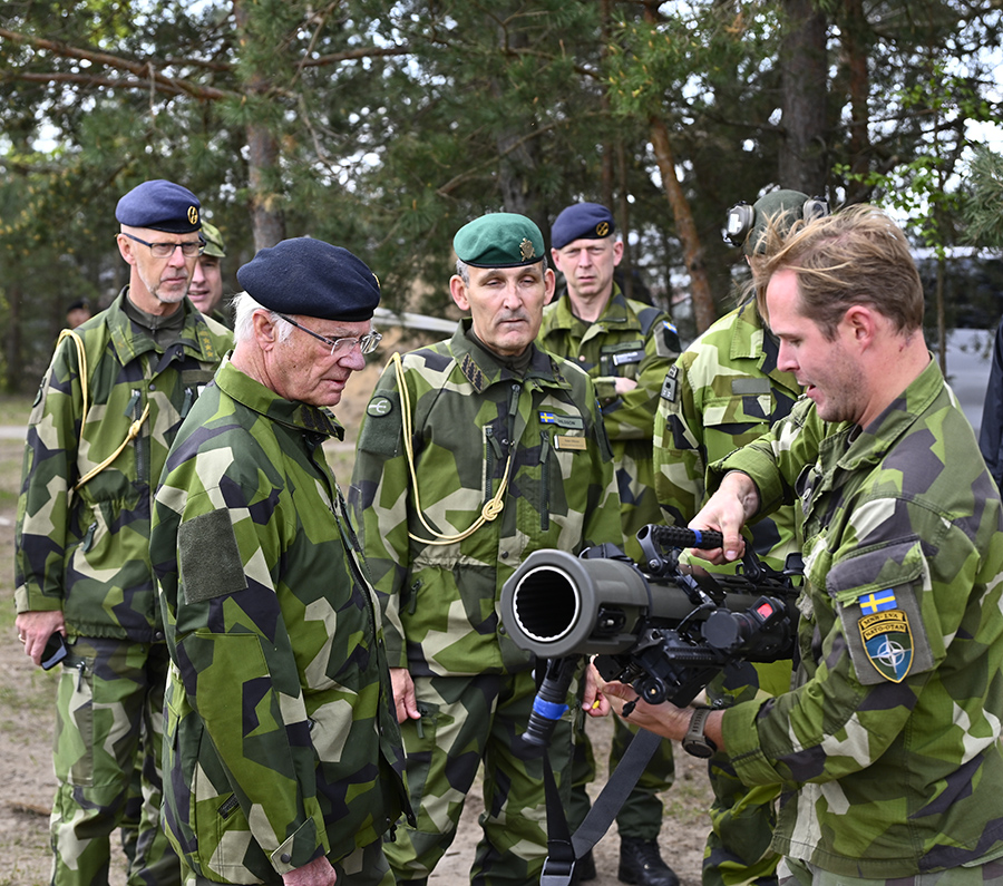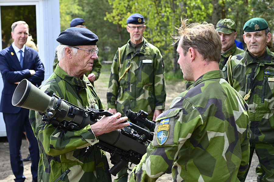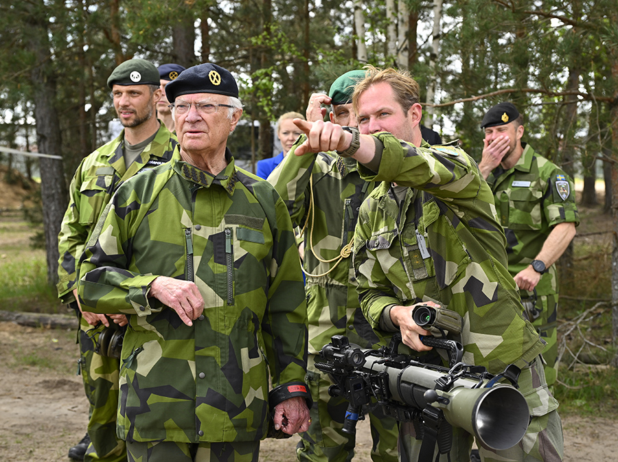 En särskild stund under besöket var när kungen poserade med granatgeväret Carl Gustaf, som bär hans namn.