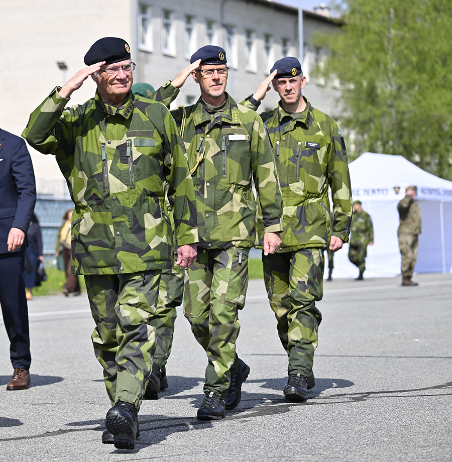 På Camp Valdemar mötte kungen den svenska bataljonen, som utgör Sveriges bidrag till Natos multinationella brigad i Lettland.