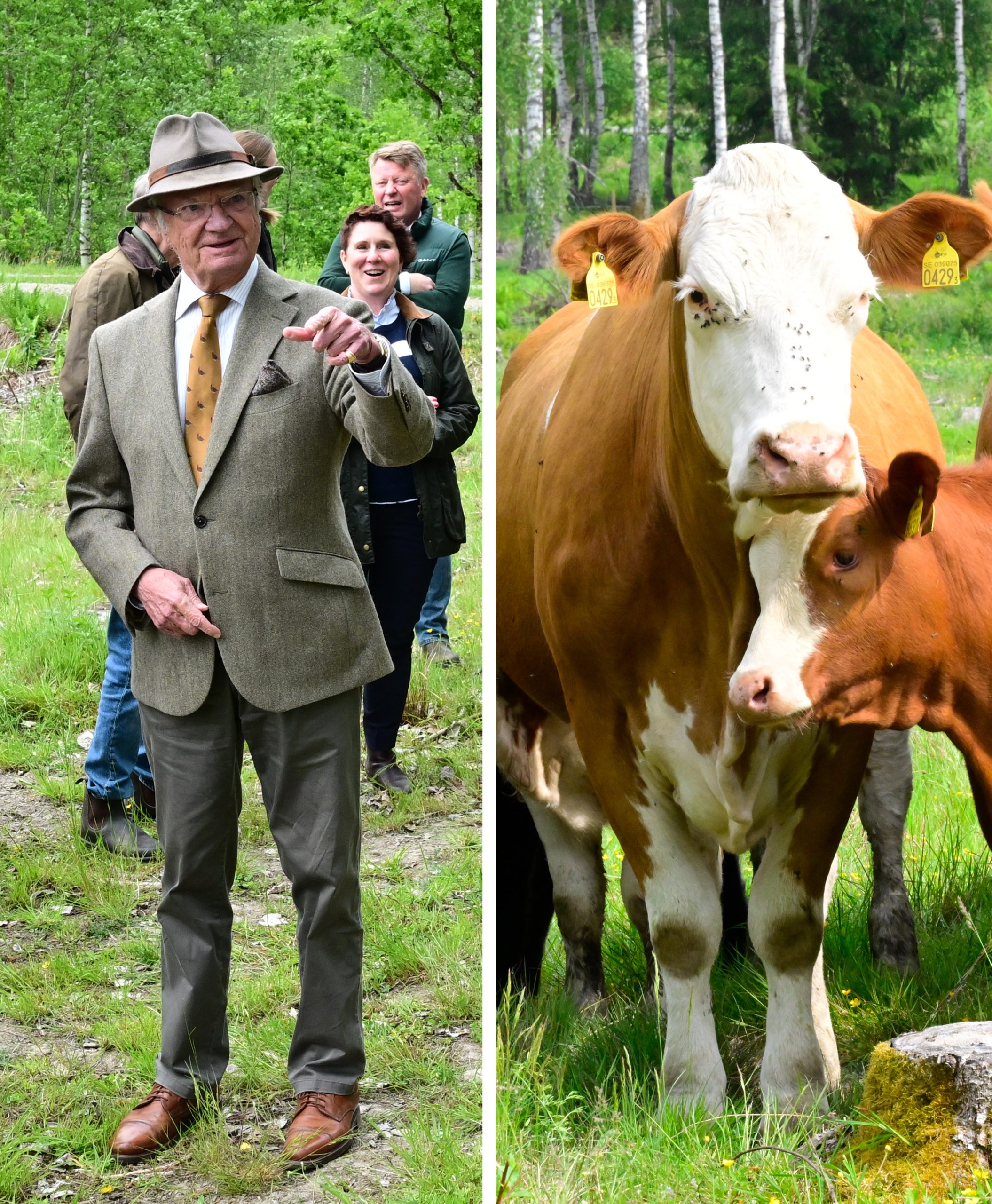 Efter att ha hållit ett inledningstal om hållbar matproduktion, biologisk mångfald och den svenska livsmedelssektorns framtid, tog kungen en promenad bland utställarna – och stannade till hos några mycket nyfikna deltagare: korna.