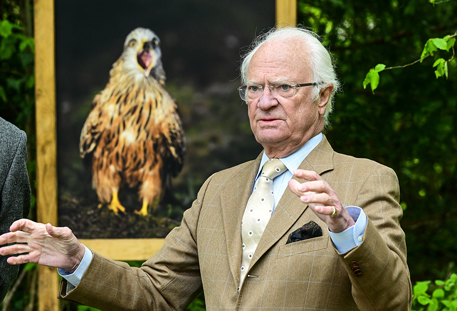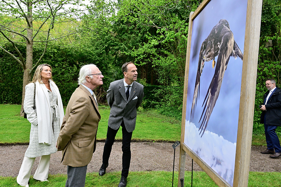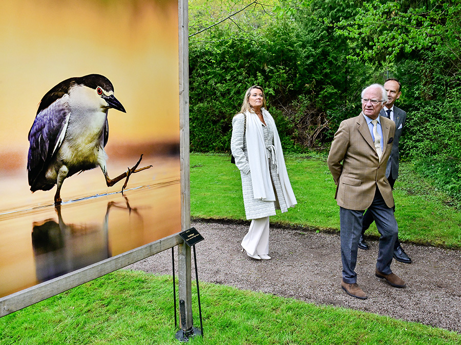 Kungen tittade även på naturfotografen Brutus Östlings, 66, vackra bilder av fåglar.