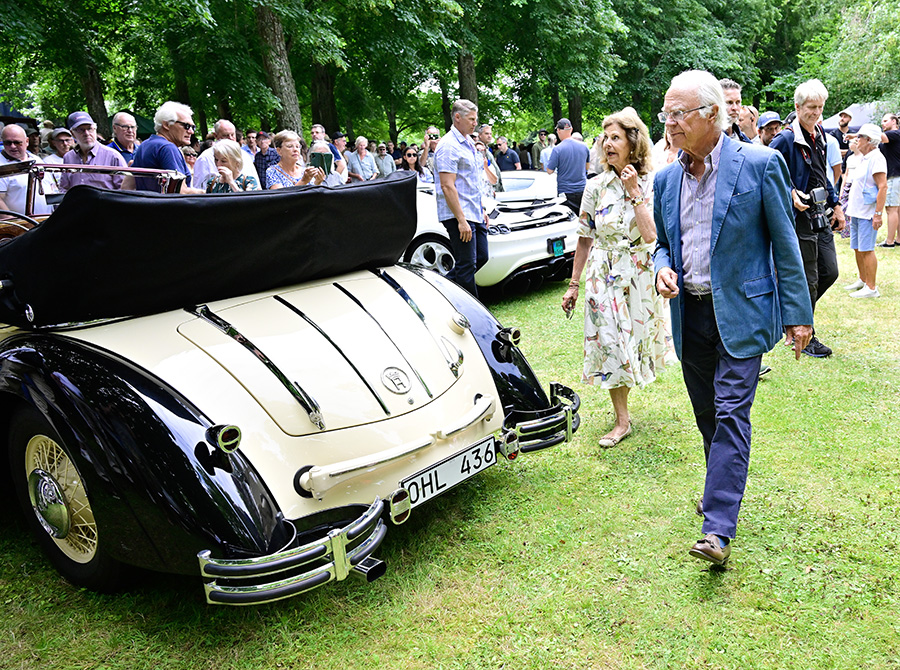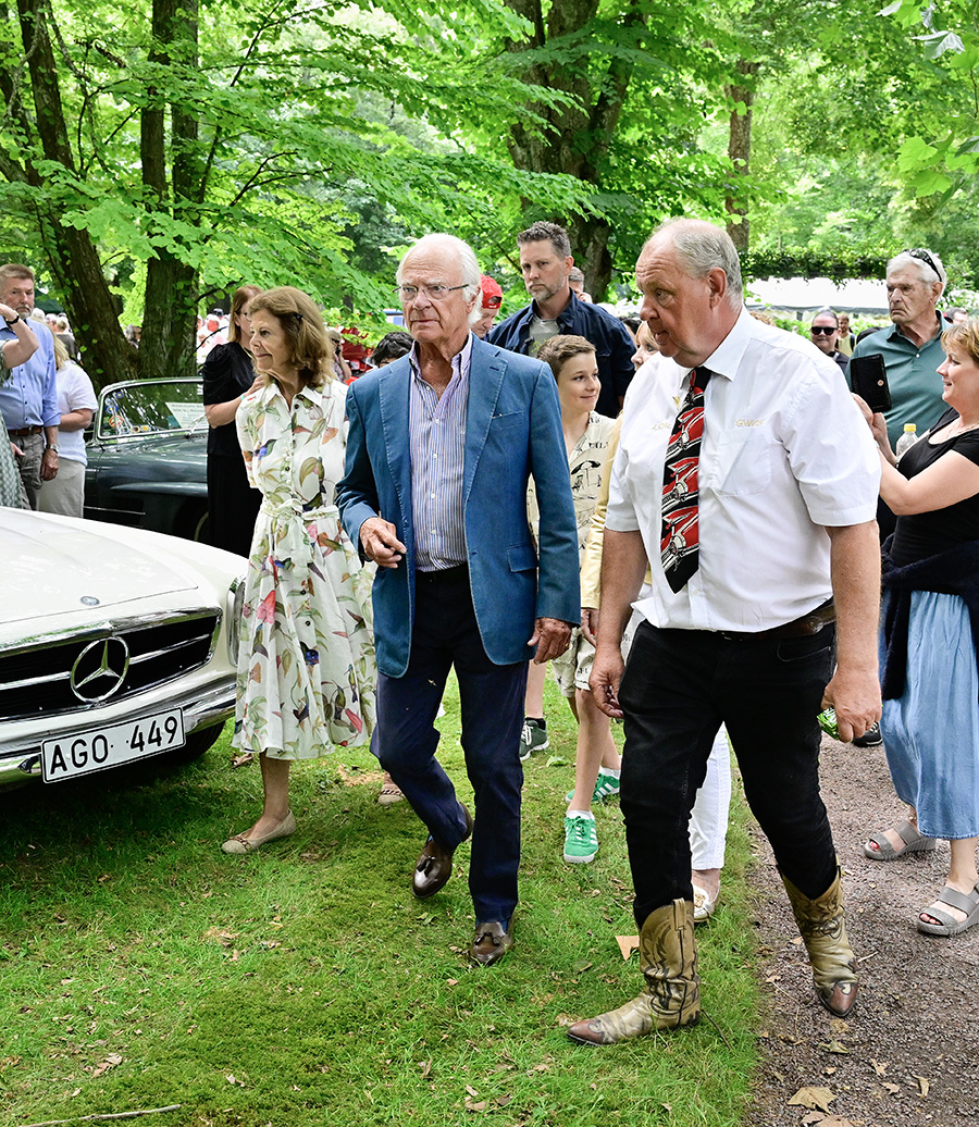 Barnfamiljer, samlare och motorentusiaster trängdes på gräsmattan och fick en unik chans att komma både kungligheter och veteranbilar nära.