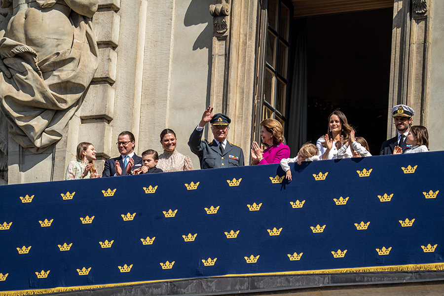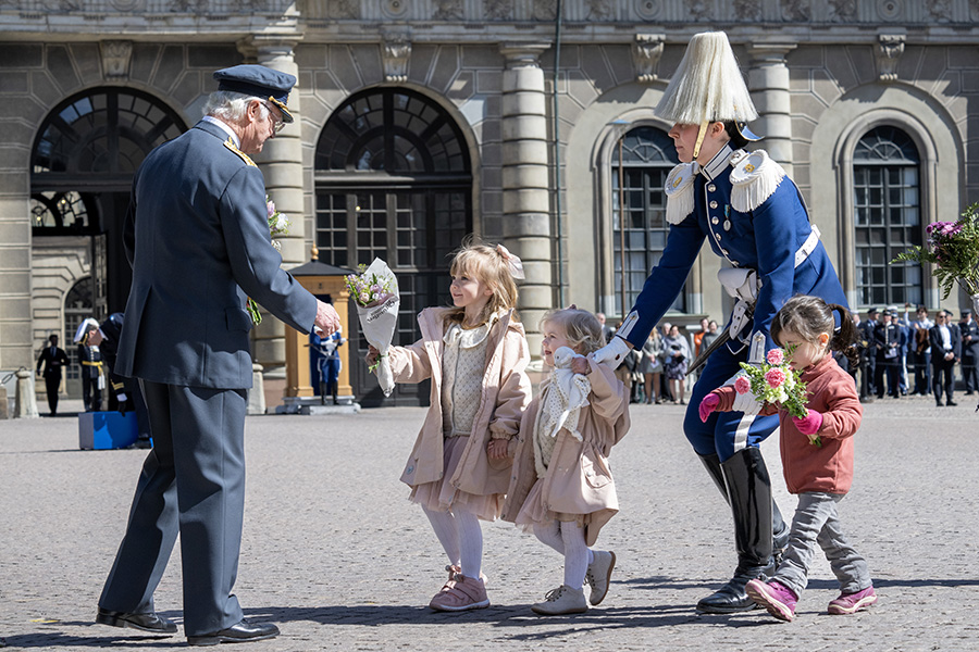 Efter ceremonierna samlas kungafamiljen på slottsbalkongen, samtidigt som barn får möjlighet att överlämna blommor till kungen – ett älskat inslag i födelsedagsfirandet.