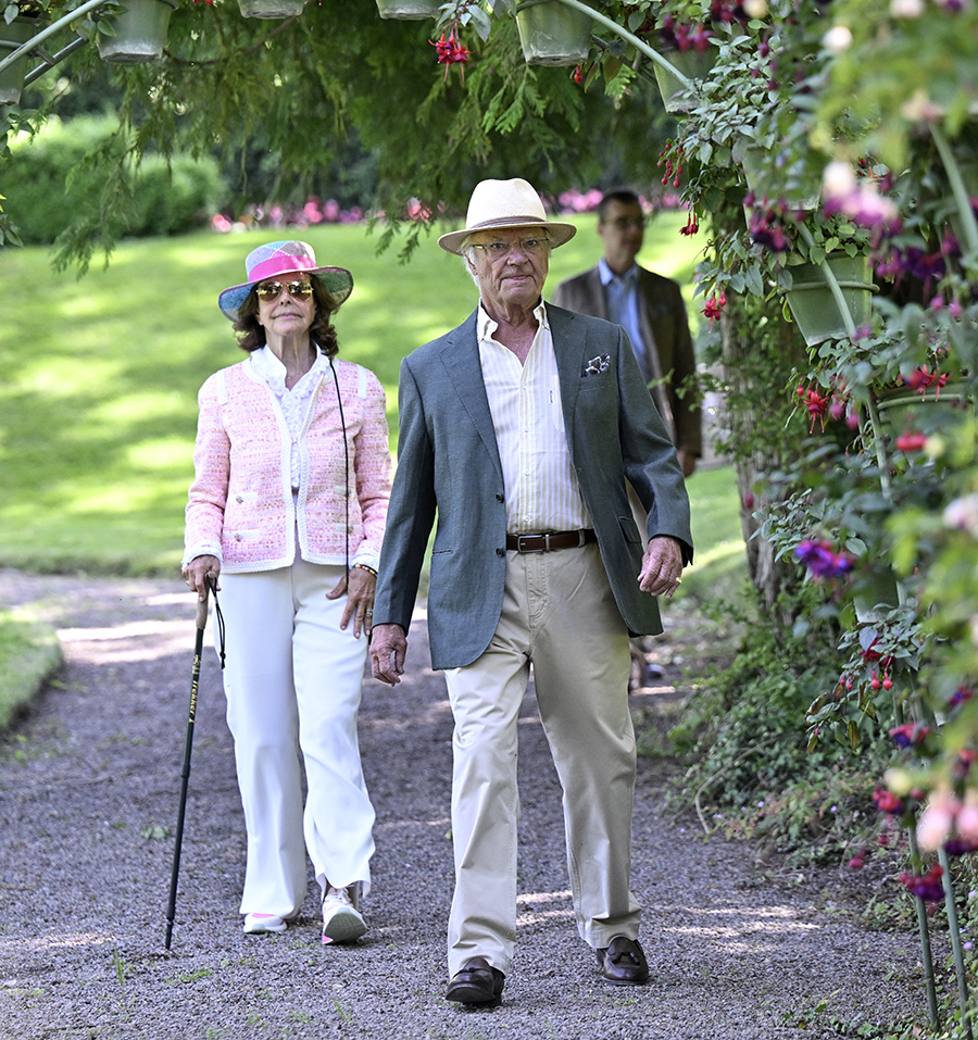 Bland alla sommarblommor lutade sig kungen diskret in för en öm gest — ett ögonblick som blev till ljuv kärlek på bild för dem som var med.