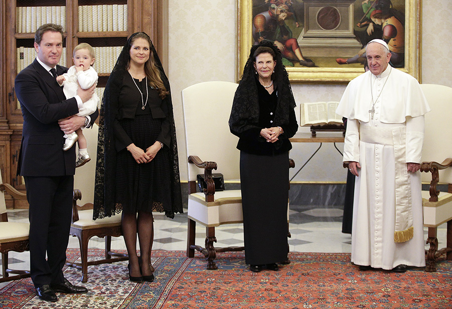 Vid ett besök 2015 fick även prinsessan Leonore, 11, möjlighet att träffa påven tillsammans med sina föräldrar, prinsessan Madeleine, 42, och Chris O’Neill, 50.