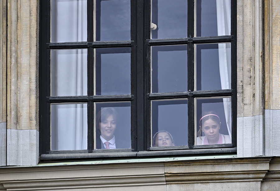 På slottsbalkongen syntes prinsessan tillsammans med sin make Chris O’Neill, 50, och deras tre småkronor.