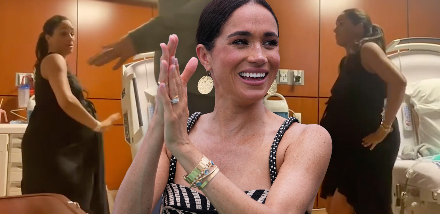Klippet visar hur Meghan och Harry syns dansa i förlossningsrummet till den virala låten ”The Baby Momma Dance” av Starrkeisha – i hopp om att dansen ska få fart på förlossningen.
