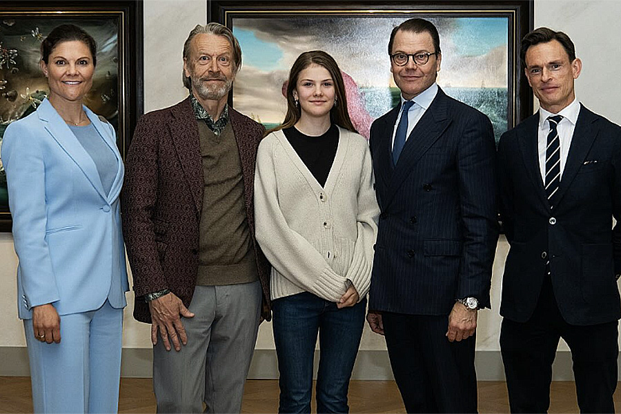Den 13-åriga prinsessan fick med föräldrarna ta del av utställningen ”Ernst Billgren – nya minnen”, i sällskap av konstnären själv och Nationalmuseums överintendent Patrick Amsellem, 55.