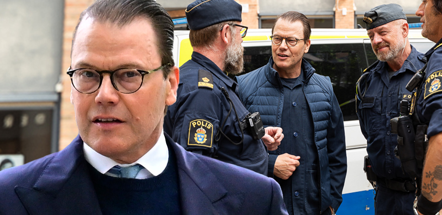 Prins Daniel, som själv ofta lyfter frågor om trygghet, ungas villkor och hälsa, syntes till synes avslappnad i samspråk med tre poliser.