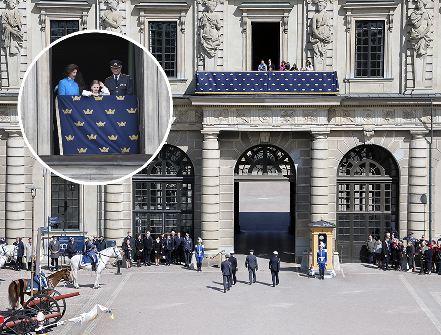 Därefter brukar kungen visa upp sig med familjen på balkongen som vätter ut mot yttre borggården.