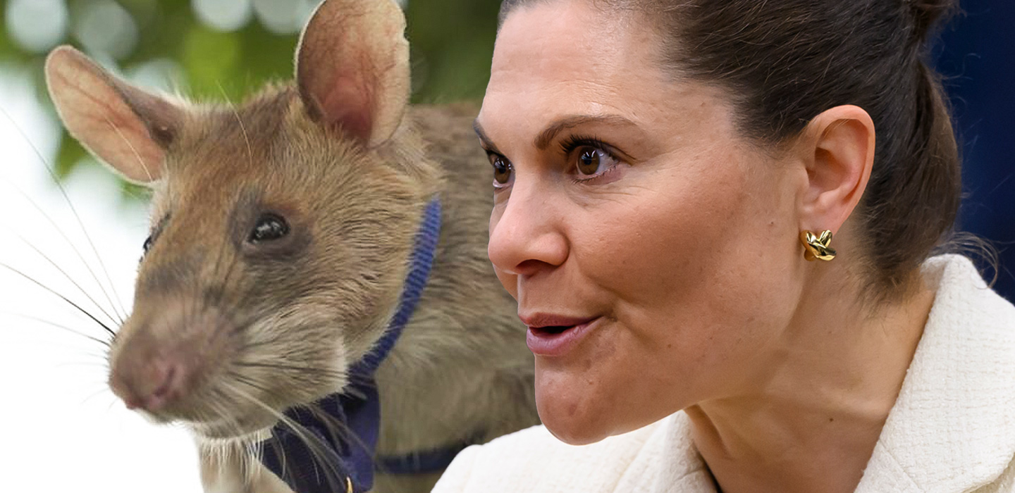 Nu jämförs kronprinsessan Victoria med råttan Magawa, som blev världsberömd i kampen mot minor. Bild: Sky News