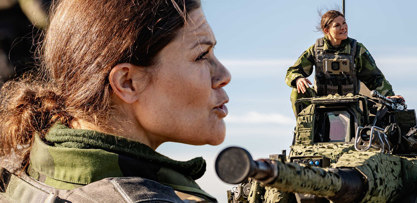 Snart stod kronprinsessan uppe på ett av de svenska stridsfordonen ute på fältet.