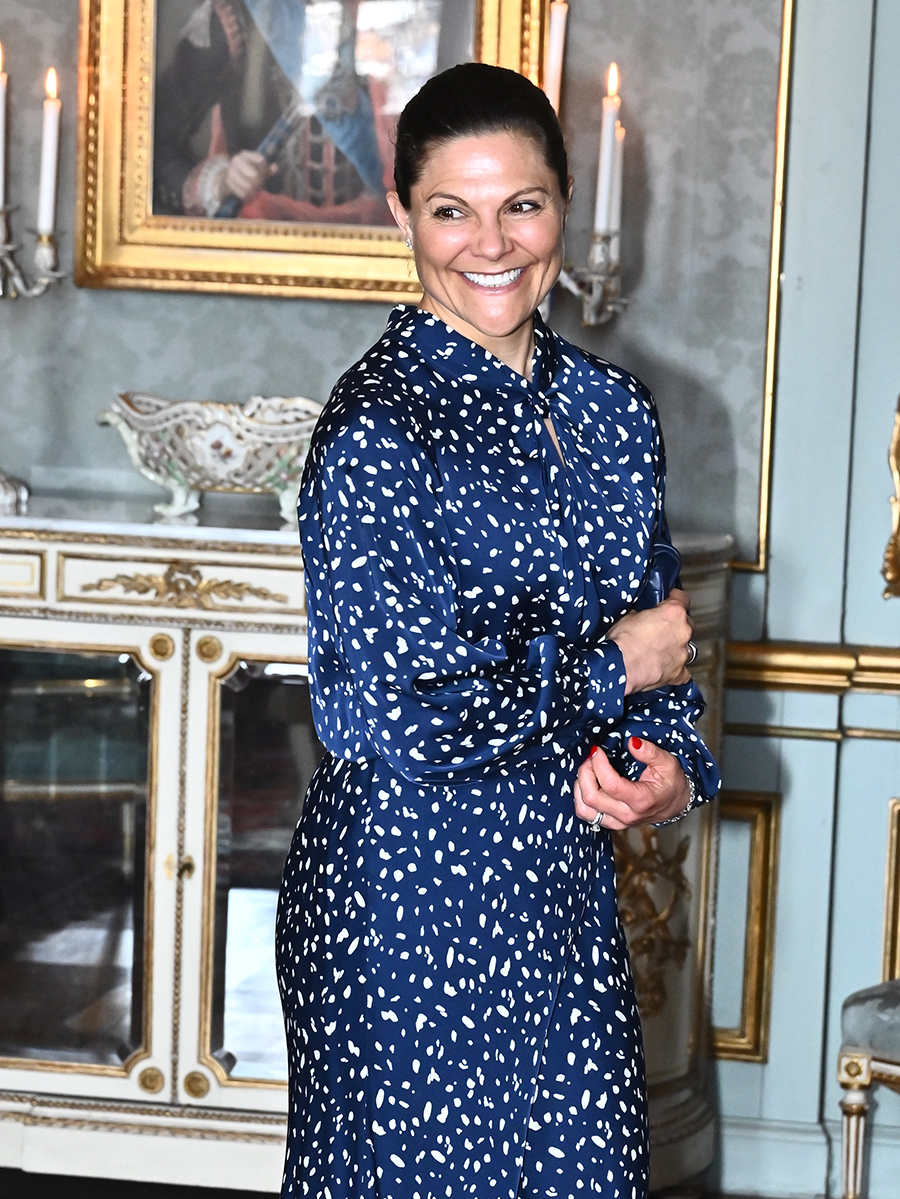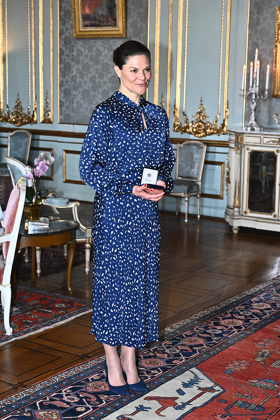 Victoria gjorde entré i en vacker blå klänning med långa ärmar från modemärket Stockh Im av MQ.