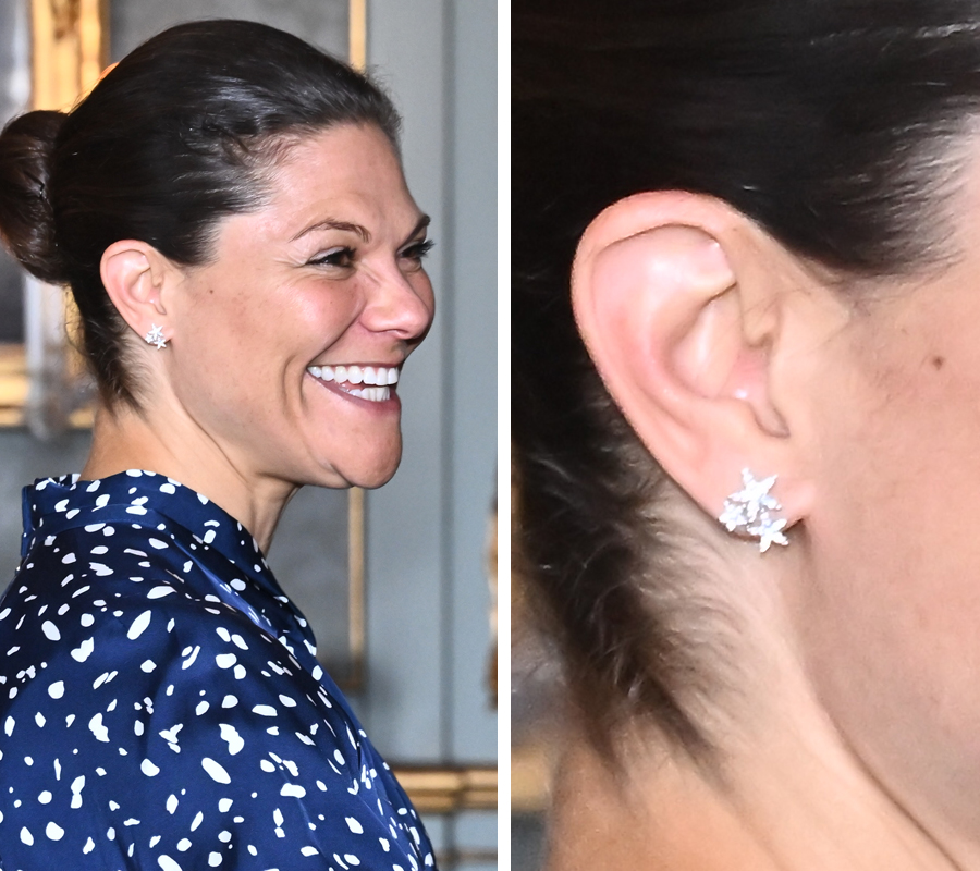 De fina örhängena, bestående av tre små gnistrande stjärnor, kommer från Ebba Brahe Jewellery.