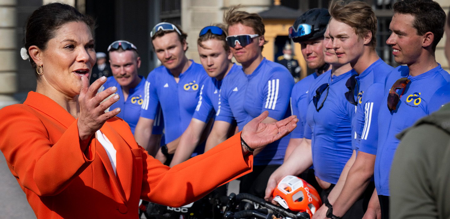 – Ja, jag och de två andra initiativtagarna har haft möten med hovet och planerat allting, vi har hållit det hemligt. Så de andra cyklisterna visste inte om det. Så det blev en överraskning för både publiken och alla i gänget utom oss, säger Gustaf Wibom, 20, till Svensk Dam.
