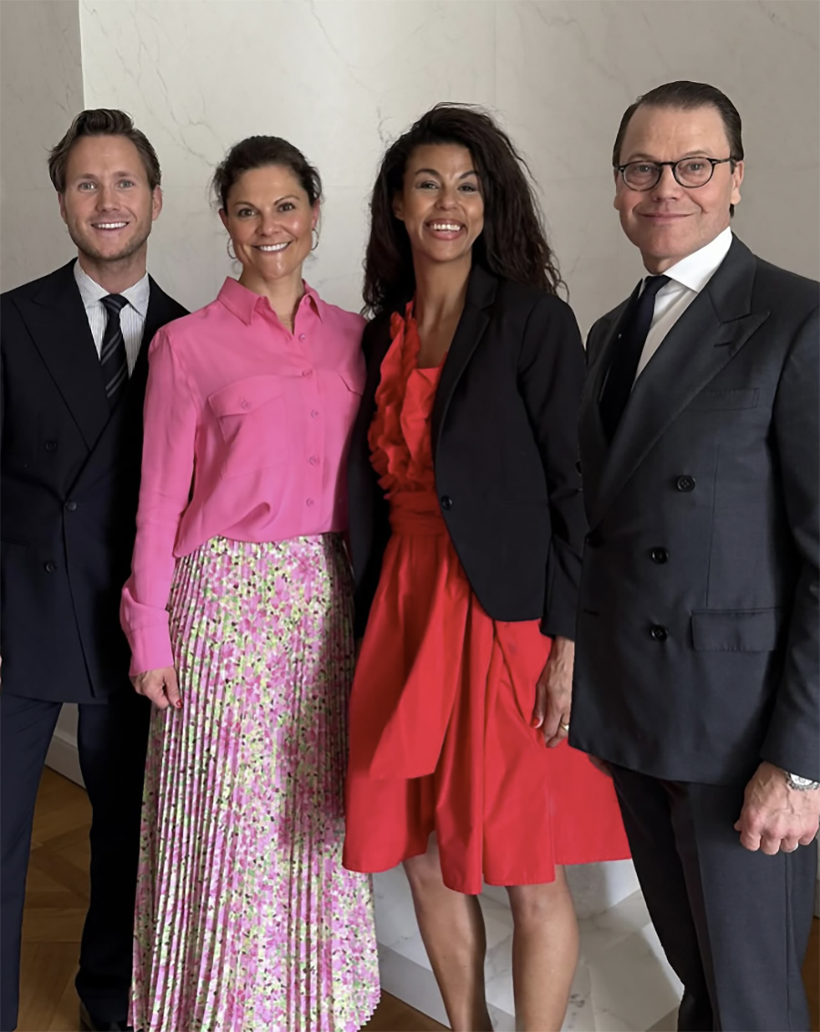 På Instagram har Viktor Frisk nu delat ett inlägg med en bild där han poserar intill Victoria och Daniel samt medambassadören Vivi Wallin, 47.