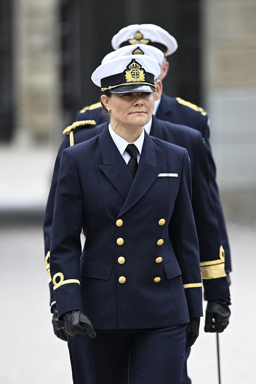 Kronprinsessan Victoria i flottans uniform under firandet av kungen på Kungliga slottet. Bild: Pontus Lundahl/TT
